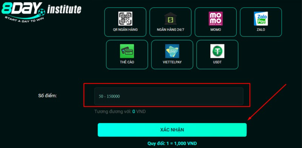 Hướng dẫn 03 hình thức nạp tiền 8DAY