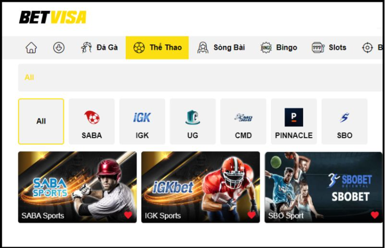 Hiện tại, hệ thống nhà cái Betvisa hỗ trợ người chơi đặt cược trên nhiều sảnh khác nhau. Mỗi một nhà cung cấp đều sẽ có những bộ môn thể thao đặc trưng. Để giúp bạn chọn được một nơi phù hợp với mình và tham gia cá độ thì ngay sau đây chúng ta sẽ cùng đi vào chi tiết về danh sách như sau: