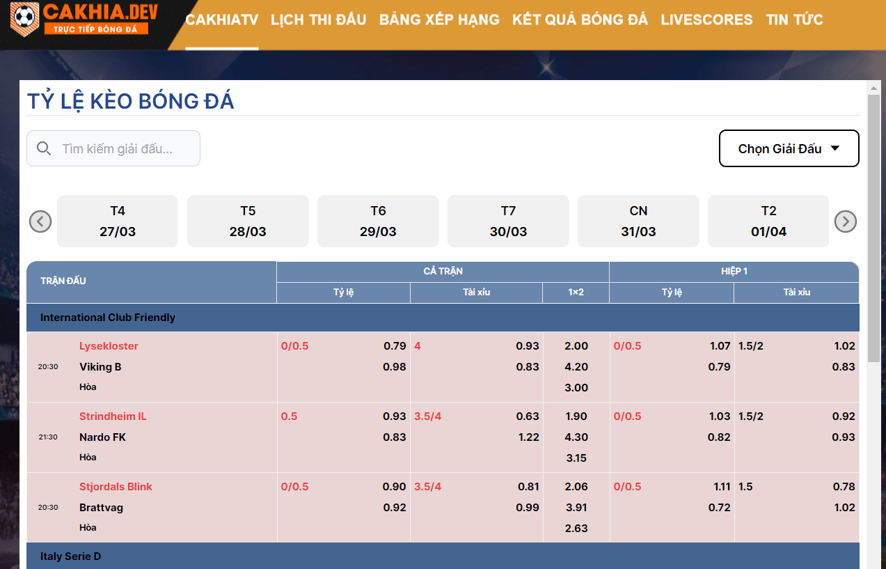 Tỷ lệ kèo bóng đá Tài Xỉu- Soi kèo nhà cái tại cakhiatv